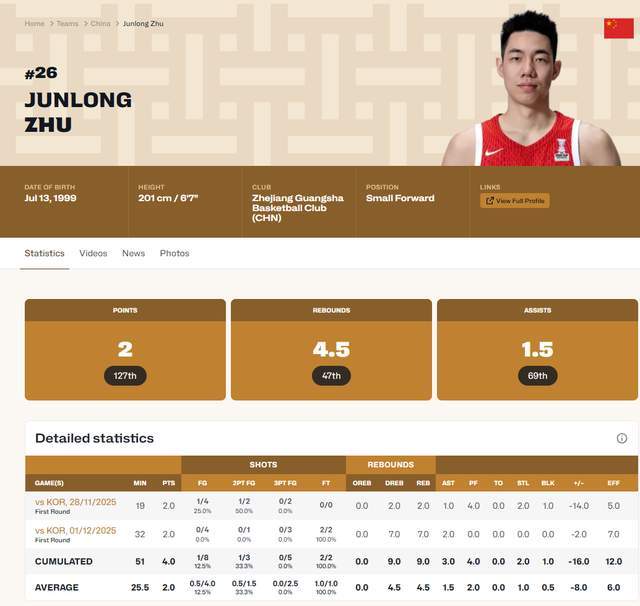 4投0中的是朱俊龙。在上一次比赛中,朱俊龙就暴露了手感的不佳,4投1中,郭士强选择继续信任他,给他首发,结果呢,这一场就更惨了,4投0中,完全没有霸气可言。如果说还有点价值的话,那就是在防守端,他好歹抢到了7个篮板球,聊以慰藉。