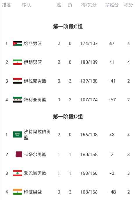约旦、伊朗都是开局2连胜,占据出线主动权,伊拉克、叙利亚都是2连败,接下来两场比赛非常关键,如果继续输球,晋级压力越来越大。