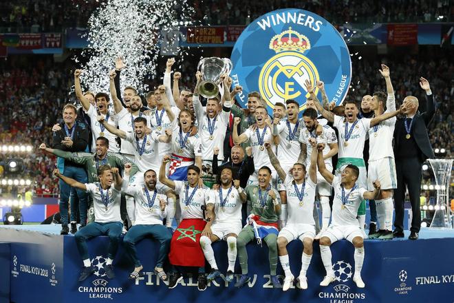 2018年5月26日,欧冠决赛,皇马3-1战胜利物浦,齐达内率队实现欧冠三连冠。皇马五年内四夺欧冠,拉莫斯捧杯的时刻象征着银河战舰的至高巅峰,拉莫斯也成为足球史上唯一一个国家队大赛三连冠、俱乐部欧冠三连冠的球员。